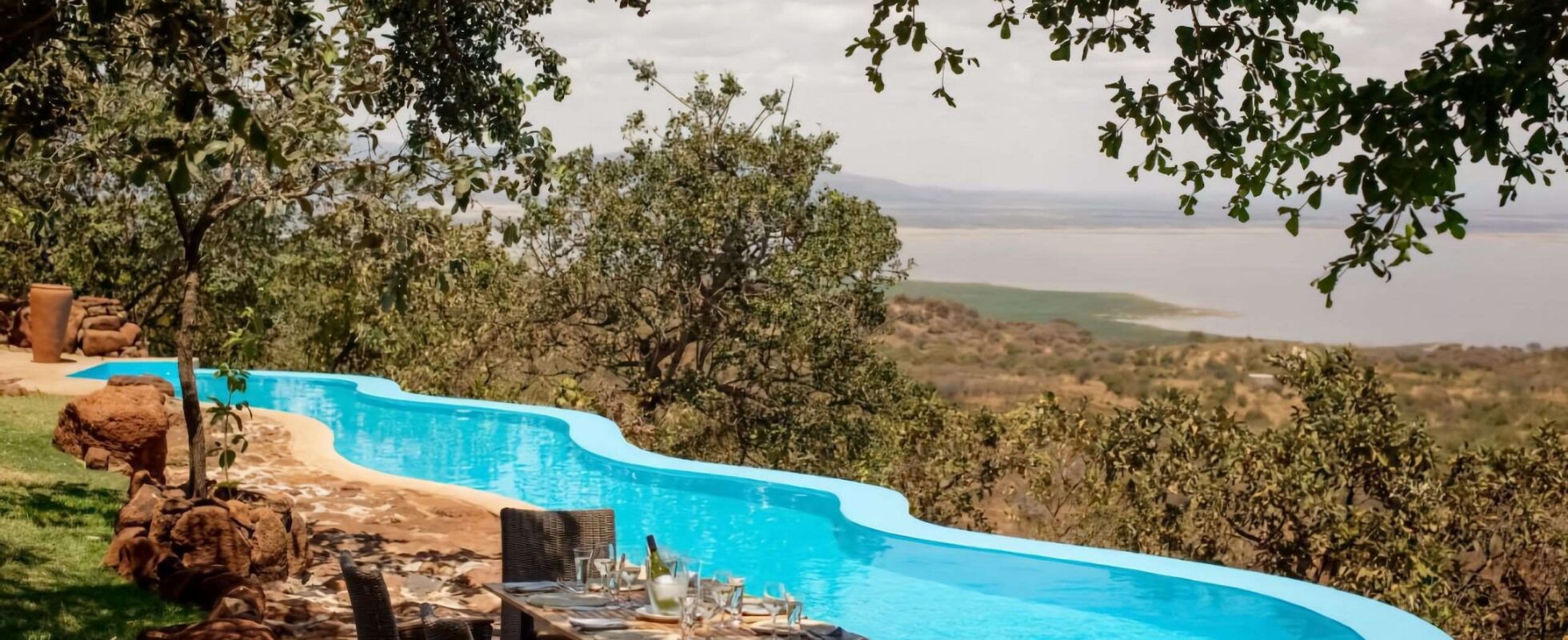 Il Mawe Mawe Manyara Lodge è un elegante lodge situato sul bordo della Rift Valley, con vista sul Parco Nazionale del Lago Manyara. Rappresenta un’ottima base per raggiungere il cratere di Ngorongoro, il Serengeti e il Tarangire. La struttura comprende un edificio principale e diverse ville, alcune dotate di piccola piscina privata e doccia esterna, che combinano comfort moderno e materiali locali. Gli ambienti sono spaziosi, riservati e regalano splendide vedute sulla valle. L’edificio centrale ospita una piscina a sfioro, un’ampia area lounge, una spa, un ristorante e un bar, ideali per rilassarsi al termine della giornata. Seduti accanto al fuoco, dopo una cena preparata con cura e accompagnata da una selezione di vini, mentre si ammira il cielo africano, si comprende come Mawe Mawe sia un luogo davvero speciale immerso nella natura.