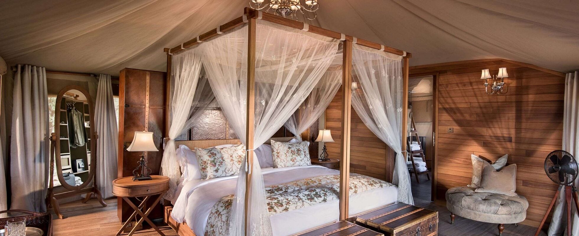 Il campo tendato One Nature Nyaruswiga, nel Parco Nazionale del Serengeti, è una struttura in cui nulla è lasciato al caso. Le tende sono splendide e molto spaziose, arredate con mobili raffinati in stile classico, bagni eleganti e docce esterne. I grandi divani confortevoli, i letti a baldacchino ricchi di cuscini, il camino a legna all’interno della tenda e la vasca da bagno in stile classico collocata direttamente nella camera da letto, accanto al fuoco, esprimono un livello di lusso raro da trovare altrove. Il camp dispone di 12 tende progettate per 2–3 ospiti e di 2 tende familiari che possono accogliere fino a 6 persone. Offre inoltre un’elegante lounge, un ristorante con tovaglie bianche, porcellane pregiate, calici in cristallo e lampadari in argento, oltre a una piscina a sfioro con jacuzzi. A completare l’esperienza, una terrazza per l’osservazione astronomica dove è possibile cenare con un telescopio accanto, per ammirare il cielo stellato.
