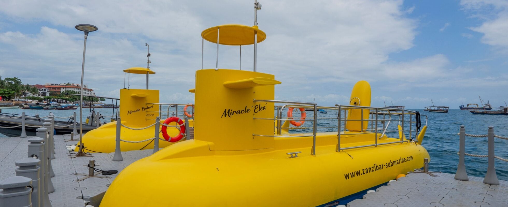 Sali a bordo di un semi-sottomarino e vivi un’avventura subacquea suggestiva attorno alla splendida isola di Bawe, nell’Oceano Indiano, a ovest della capitale di Zanzibar, Stone Town. Il semi-sottomarino naviga in superficie ma dispone di una cabina sotto la linea di galleggiamento con finestre panoramiche sottomarine che ti permettono di osservare la barriera corallina comodamente seduto!
